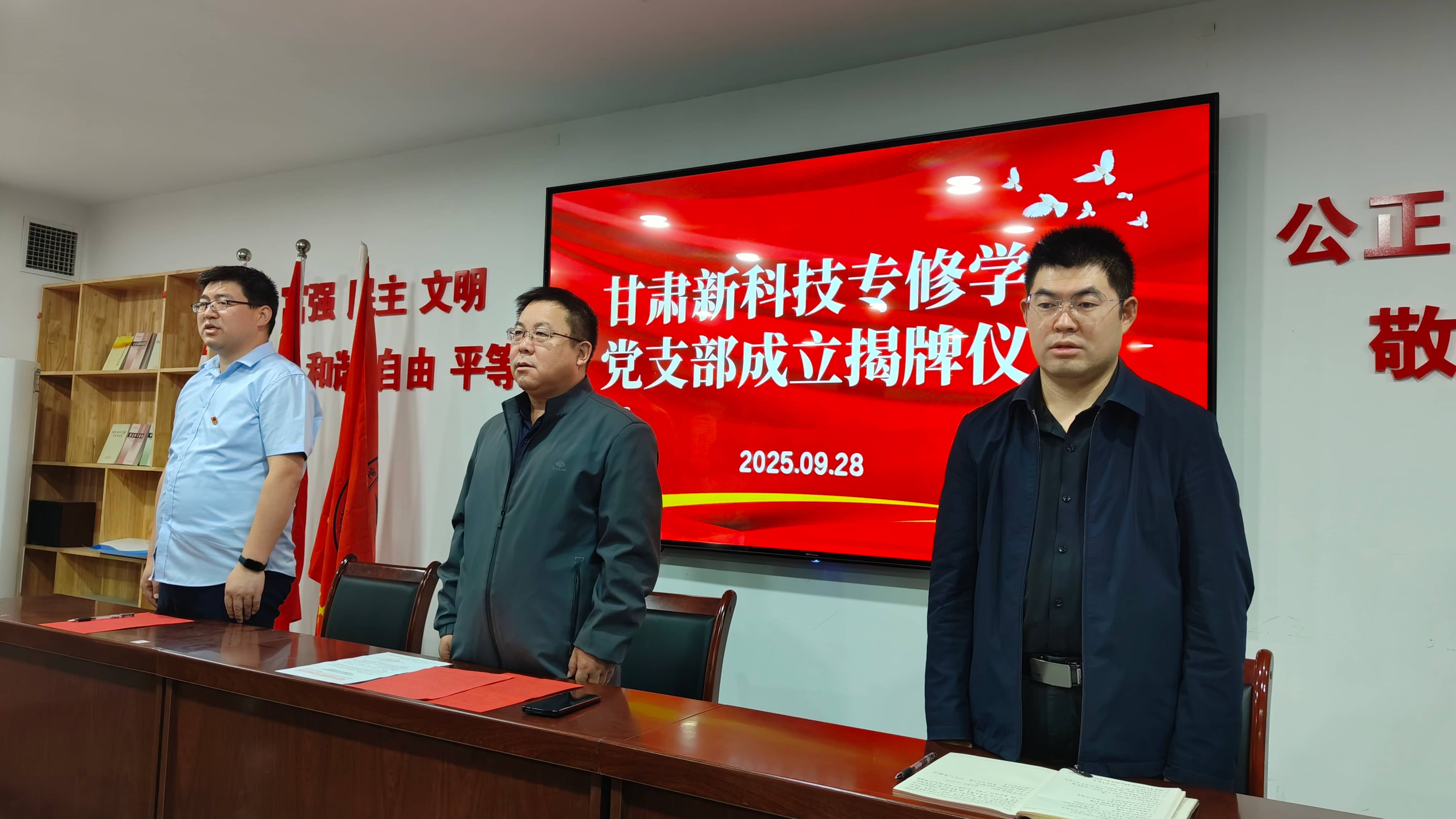 党旗引路,初心如磐。2025年9月28日,甘肃新科技专修学院党组织成立揭牌仪式隆重举行,标志着学院在坚持党的领导、落实立德树人根本任务的道路上迈出了关键一步。学院领导、全体党员及老师齐聚现场,共同见证这一重要时刻。