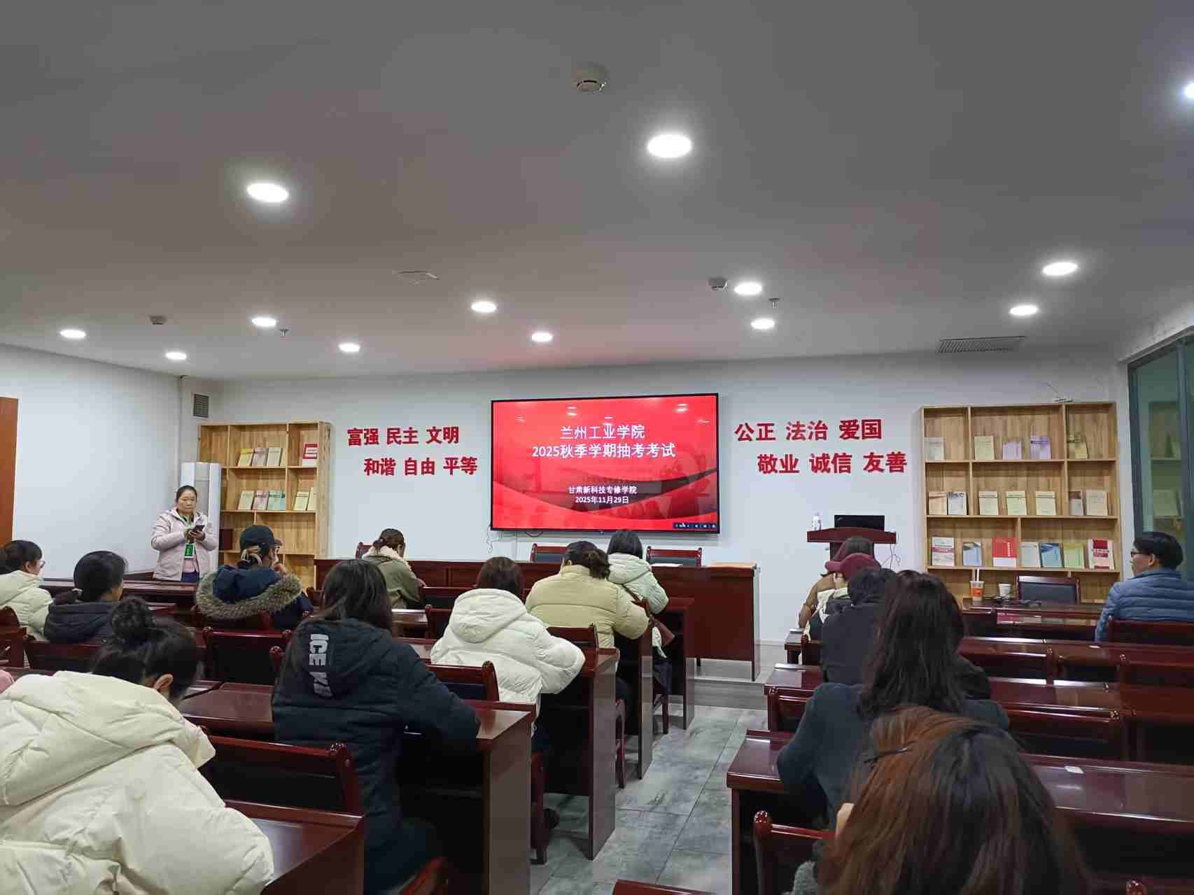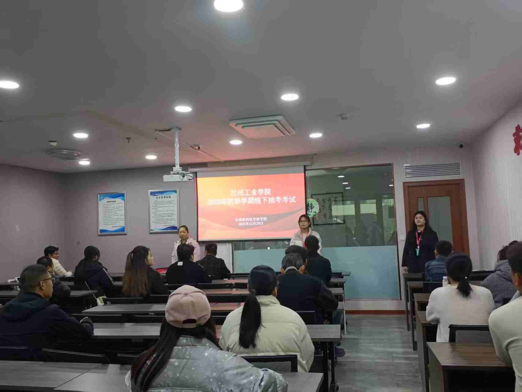 为持续深化学风建设,严格规范考风考纪,同时科学、全面地检验学生阶段性学习成果。依据兰州工业学院继续教育学院抽考通知,在2025年11月29日,我院教学站点组织兰州工业学院2025级同学参加线下期末考试。此次考试兰州工业学院继续教育学院领导非常重视,并且安排相关老师进行了巡考,对此次考试的各项工作,学校老师对我院所做的工作给予高度的评价。 考前,我院教学站点进行了精心筹备。教务老师提前通过微信群、QQ群等多平台发布考试科目、时间安排以及考试规则 ,确保每位考生都能准确知晓考试相关信息。