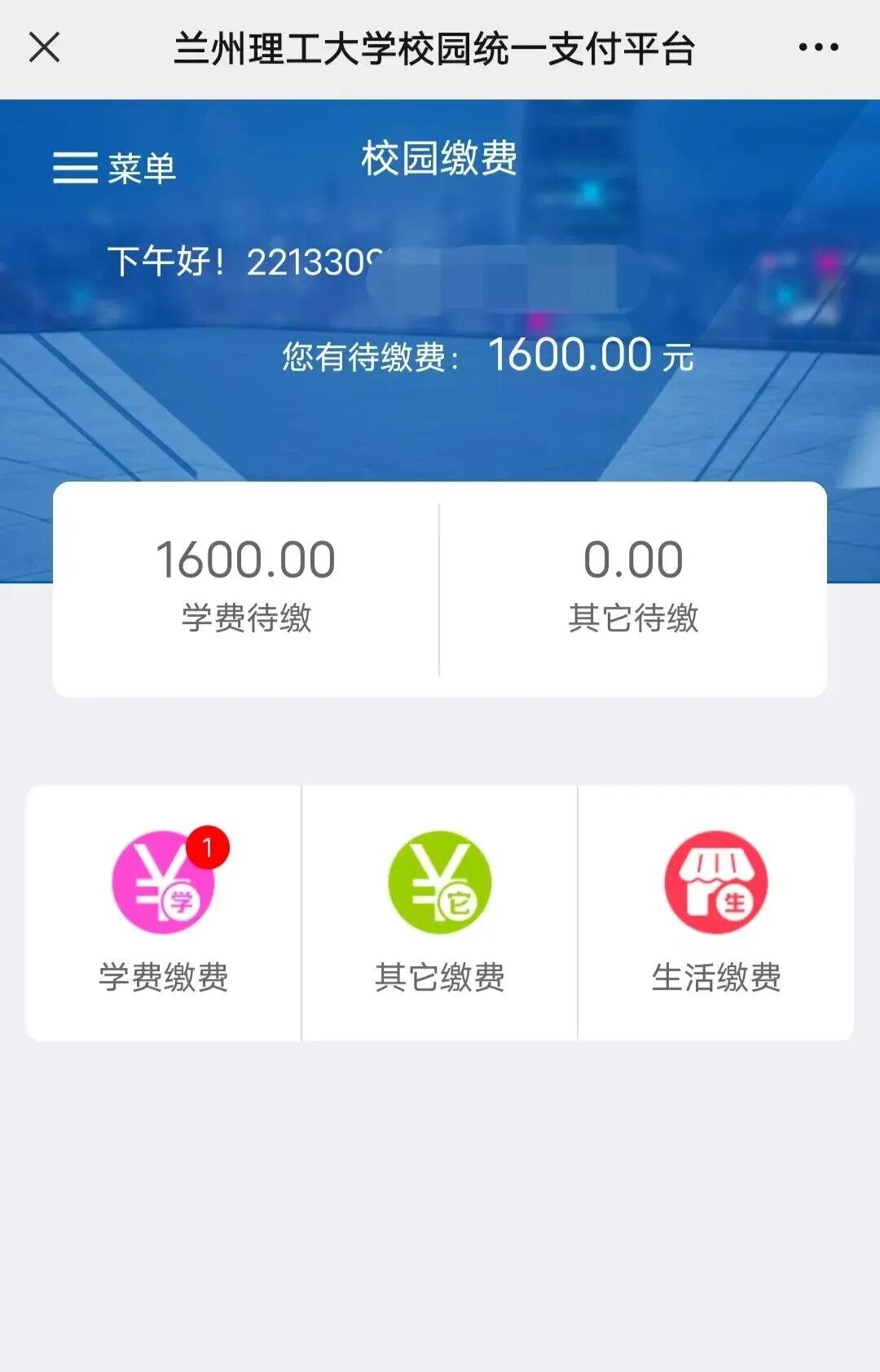 温馨提示:登录缴费平台后,如果系统提示修改密码,请学生修改密码为原密码,即Lut@身份证号后8位,以免忘记!